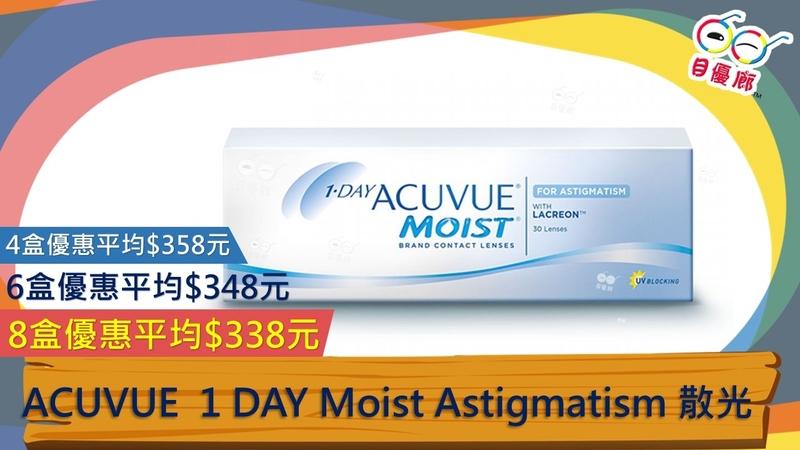 全新強生ACUVUE Moist 散光隱形眼鏡,注入ACUVUE Moist Lacreon鎖濕技術鎖住水份,令你雙眼全日保濕舒適。ACUVUE Moist 散光CON,同樣具備ACUVUE Moist防紫外光效果,有效阻隔高達98%UVB紫外光及85% UVA紫外光,附合美國ANSI二級防UV標準。