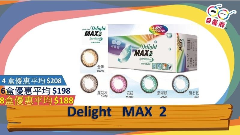 ONE-DAY Delight MAX 即棄隱形眼鏡採用深層保濕份子 HydrationPLUS (Hyaluronic Acid)。HA能鎖住一千倍水份,滲入眼睛內,令雙眼整天配戴 ONE-DAY Delight MAX 即棄隱形眼鏡更舒適、健康。尤其適合一些長時間於冷氣環境及對著電腦工作的人仕,能保持雙眼的舒適度。高科技夾色處理技術加倍細心呵護鏡片完全包覆顏色不掉色;顏色不會直接觸眼球,確保配戴安全。 無感鏡片設計,獨特納米技術,令鏡片表面平滑貼服,配戴後更感覺舒適。 漸變色彩及特大環圈設計,寬闊無顏色中心光學區,令視野更清晰,增加美麗動人眼神。 專利雙非球面變焦設計 – 高清設計1. 表面弧度 – 非球面 採用高科技設計,令鏡片更薄,延宜更高透氧度。其次,非球面設計令光學像差 (Spherical Aberration) 減少,能改善因輕微散光導致視力模糊的現象,提高視覺敏銳度,景物更逼真,更清晰自然。能有效改善晚間駕駛者及使用電腦人仕眼睛的清晰度。2. 內弧度 – 非球面 眼角膜原本是一個非球面弧度,非球面鏡片設計大大增加鏡片跟眼角膜配合度,配合使用ONE-DAY Delight MAX 鏡片後,令感覺如同未戴隱形眼鏡般的舒適。3. 防UV保濕眼睛健康 過度紫外線照射是造成白內障的原因之一,ONE-DAY Delight MAX 2 具有紫外線防護功能,能有效阻隔 99.9% UVA 及 92.3%UVB 等有害紫外線。在陽光下配戴隱形眼鏡,可讓眼睛多一層保障。One Day Delight Max2 Colors